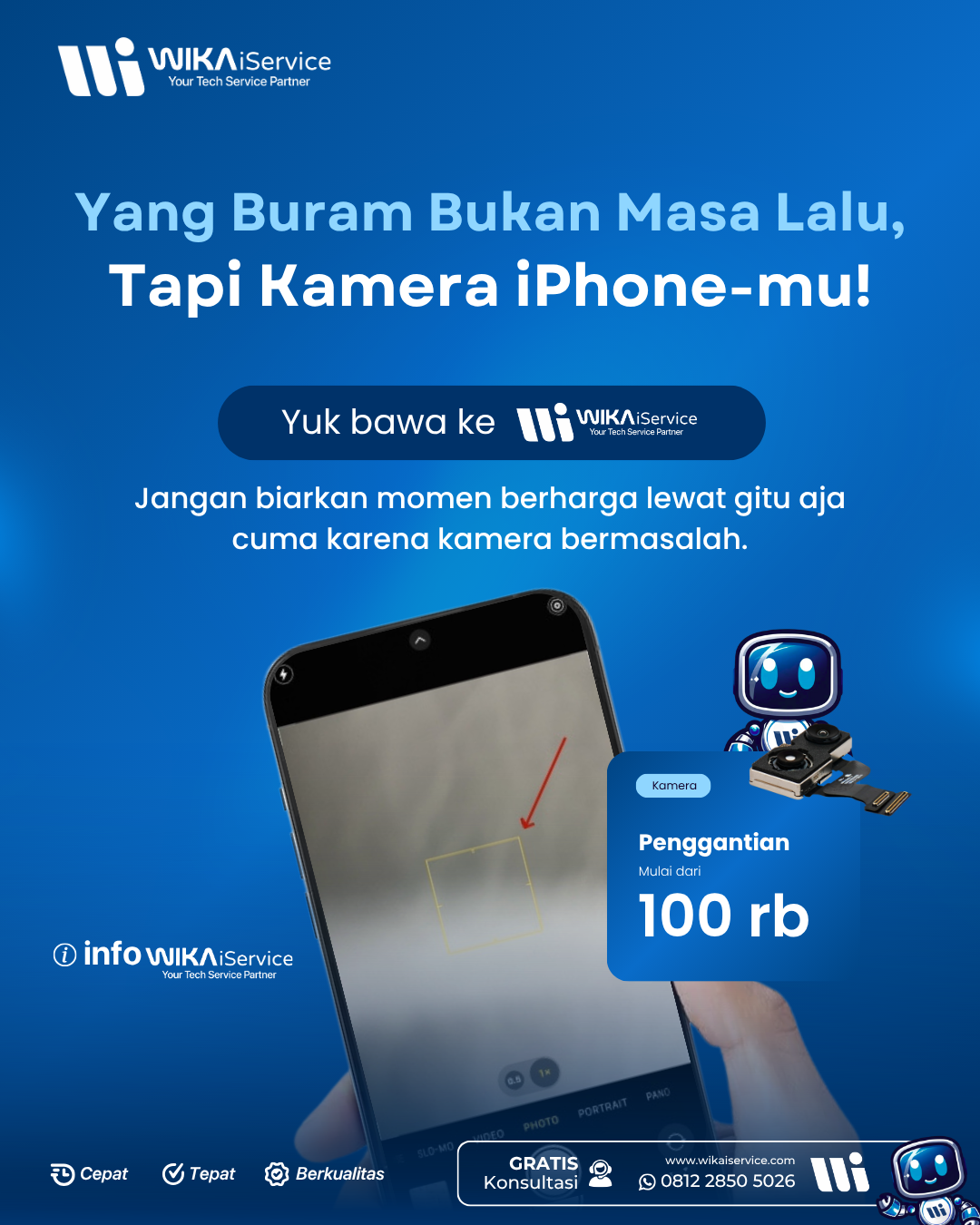 Jika semua langkah di atas tidak berhasil, kemungkinan ada kerusakan hardware pada sistem kamera TrueDepth. Tenang, Wika iService siap bantu kamu!